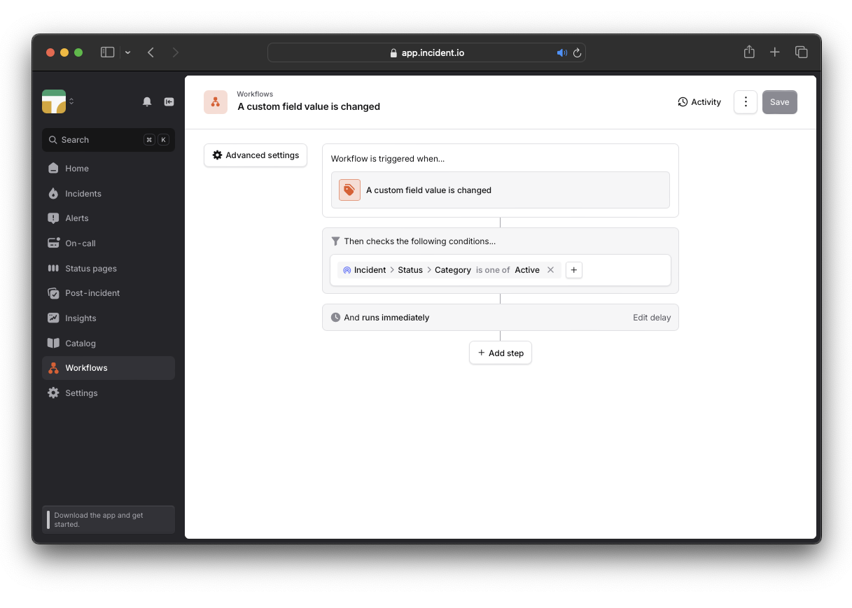 A very popular use case for Custom Fields is to use them as triggers in Workflows . For example:- Escalate to specific teams/teammates based on the severity of an incident, or the product it affects