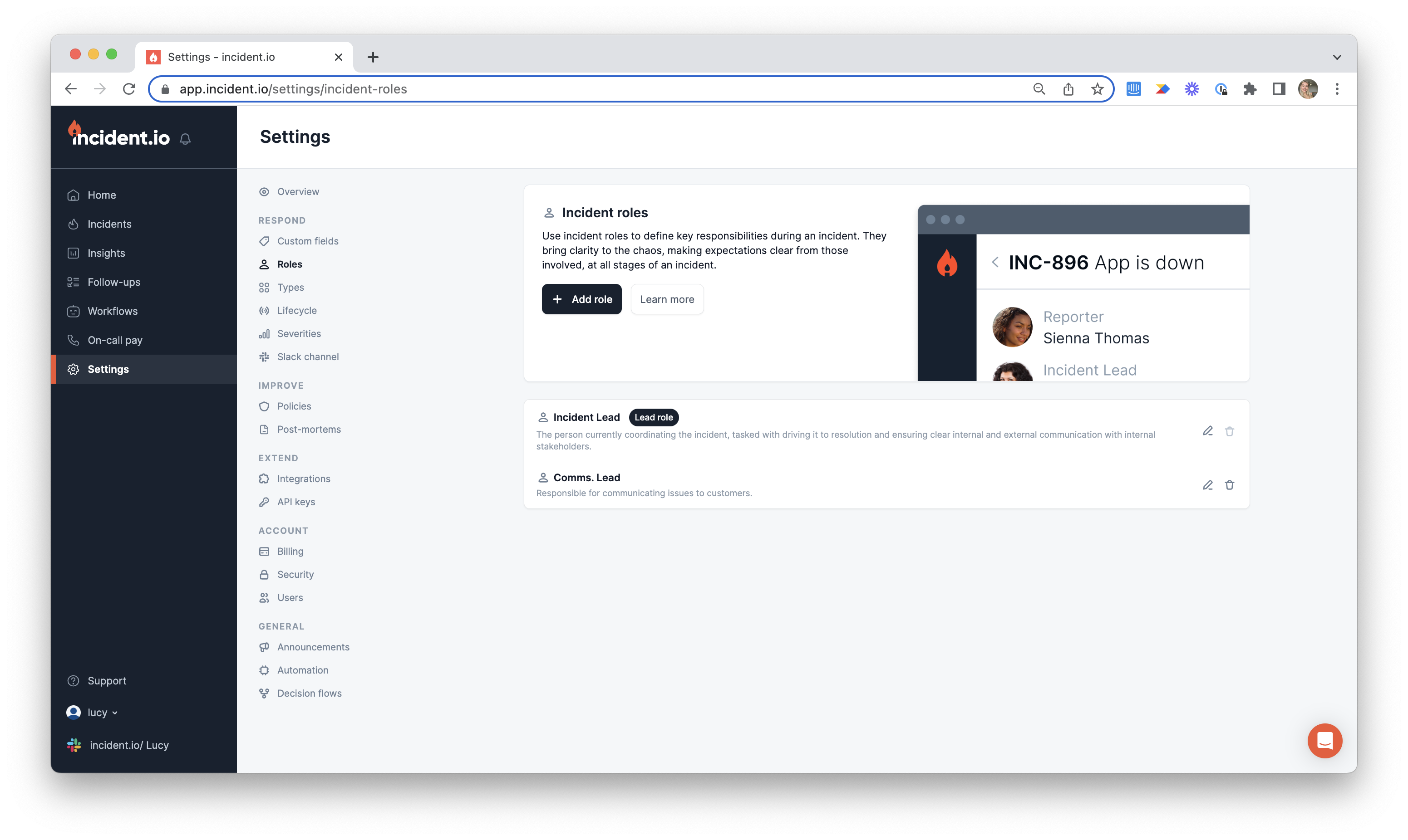 - Go to Settings > Incident Roles