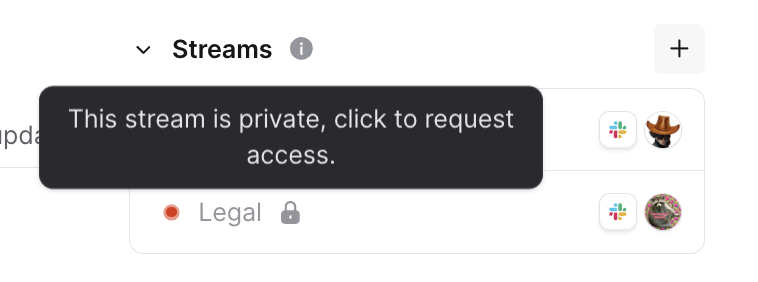 Unlike private incidents, users without access to a private stream will still be shown some basic information about it (stream name and lead) in order to know which stream of work they should request access to.