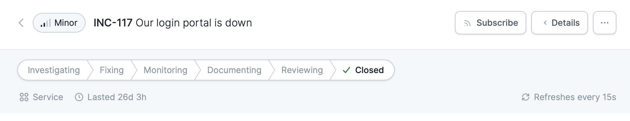 There are two places you can subscribe to an incident: on the web (via the incident homepage ) and in Slack (in the incident announcement post ). Click the “subscribe” button in the dashboard, the incident slack channel, or an announcement post and you’ll be notified of any future updates on that incident.