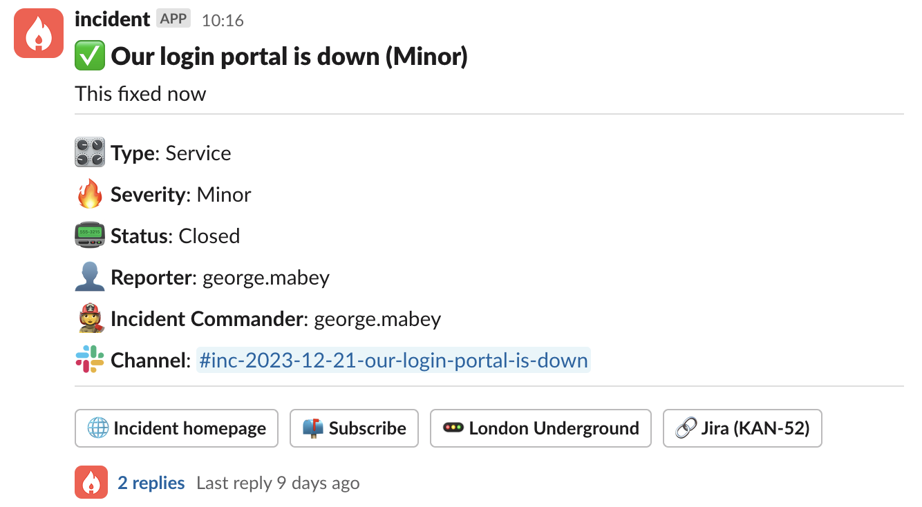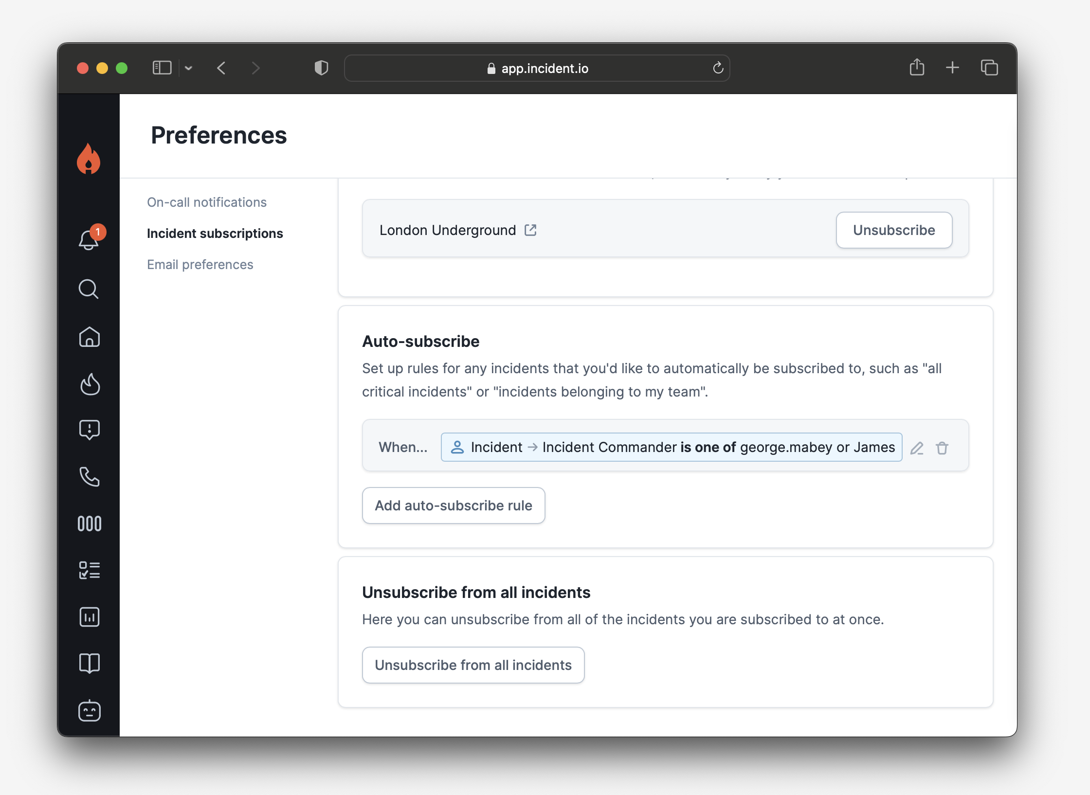 Incident subscriptions are a way to stay up-to-date with changes to an incident, without having to dig through the noise happening in its slack channel. Once you’re subscribed, when the incident gets an update you’ll receive a slack direct message or email containing the details.