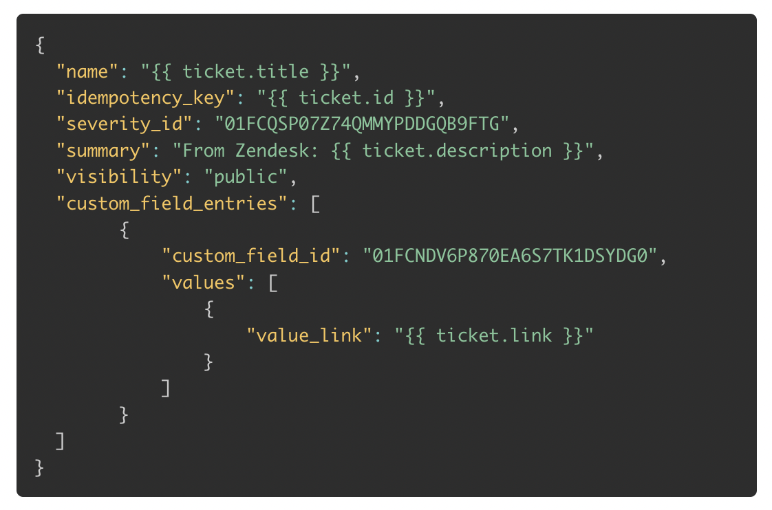 severity_idreferences our “Minor” severity. You can find the IDs of your severities using the List Severities API .