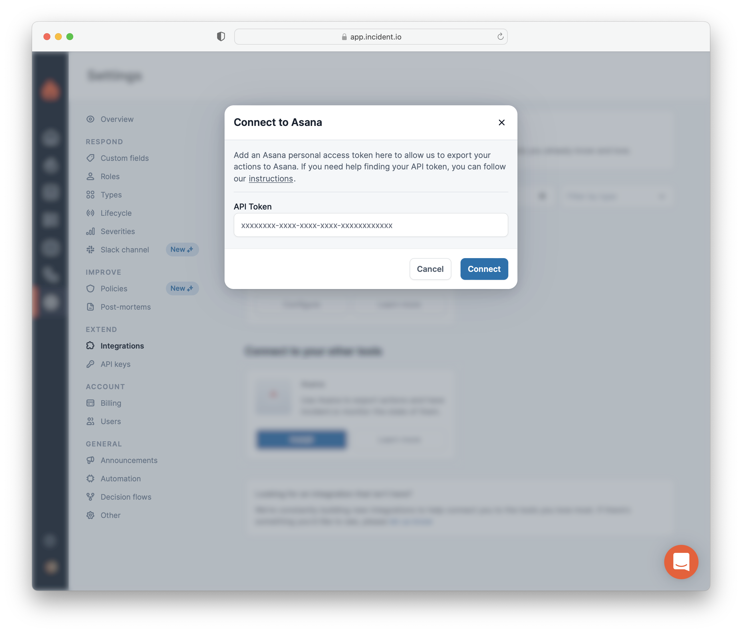 Our current integration is a fairly simple setup for now. In its present state, the integration lets you:- Export your incident follow-ups to Asana; and