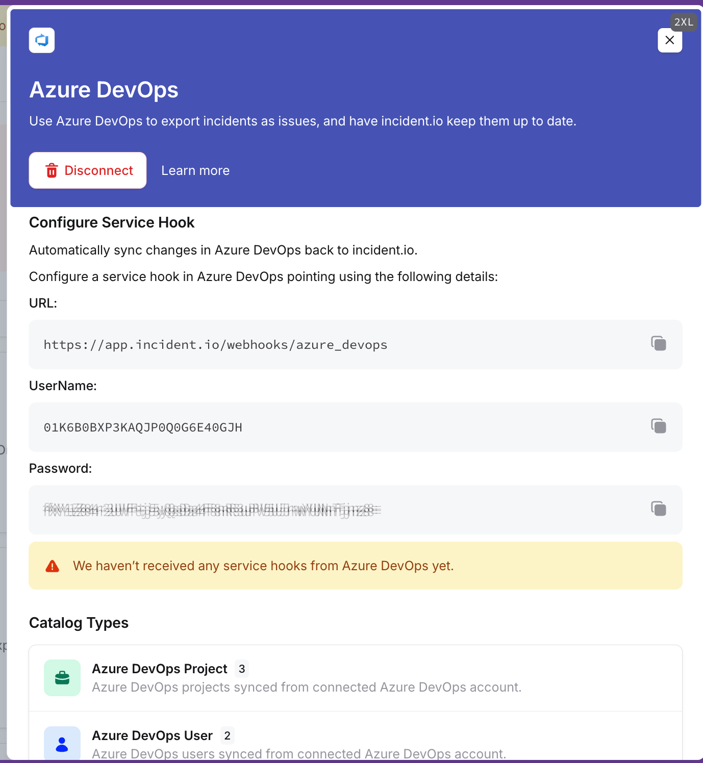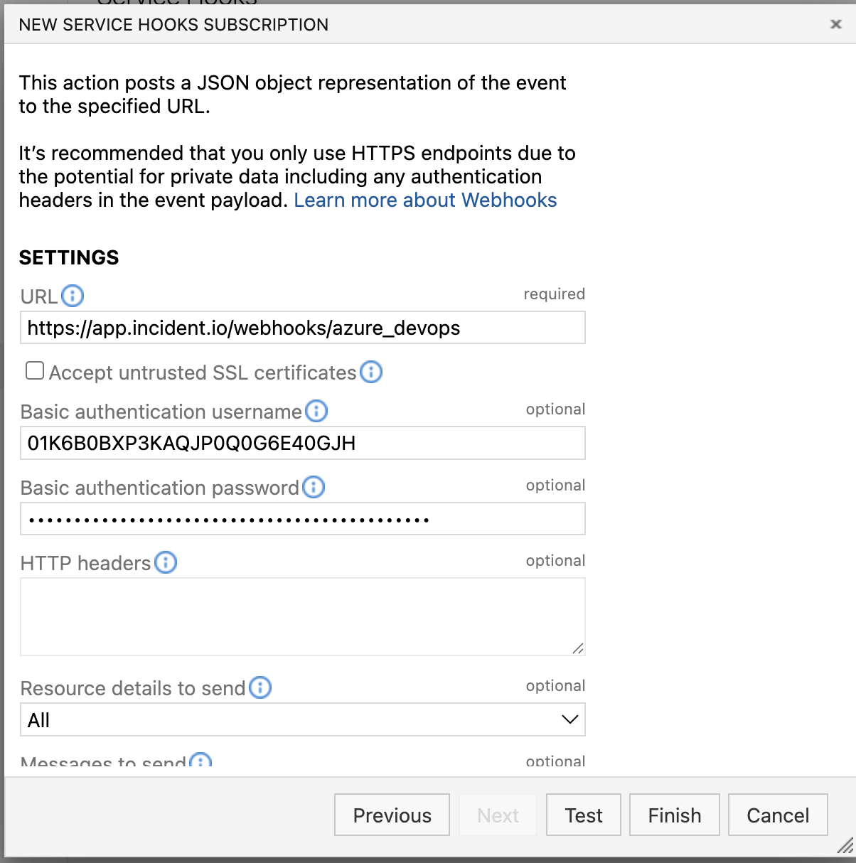 - Copy the service hooks details from the dashboard into the service hook config