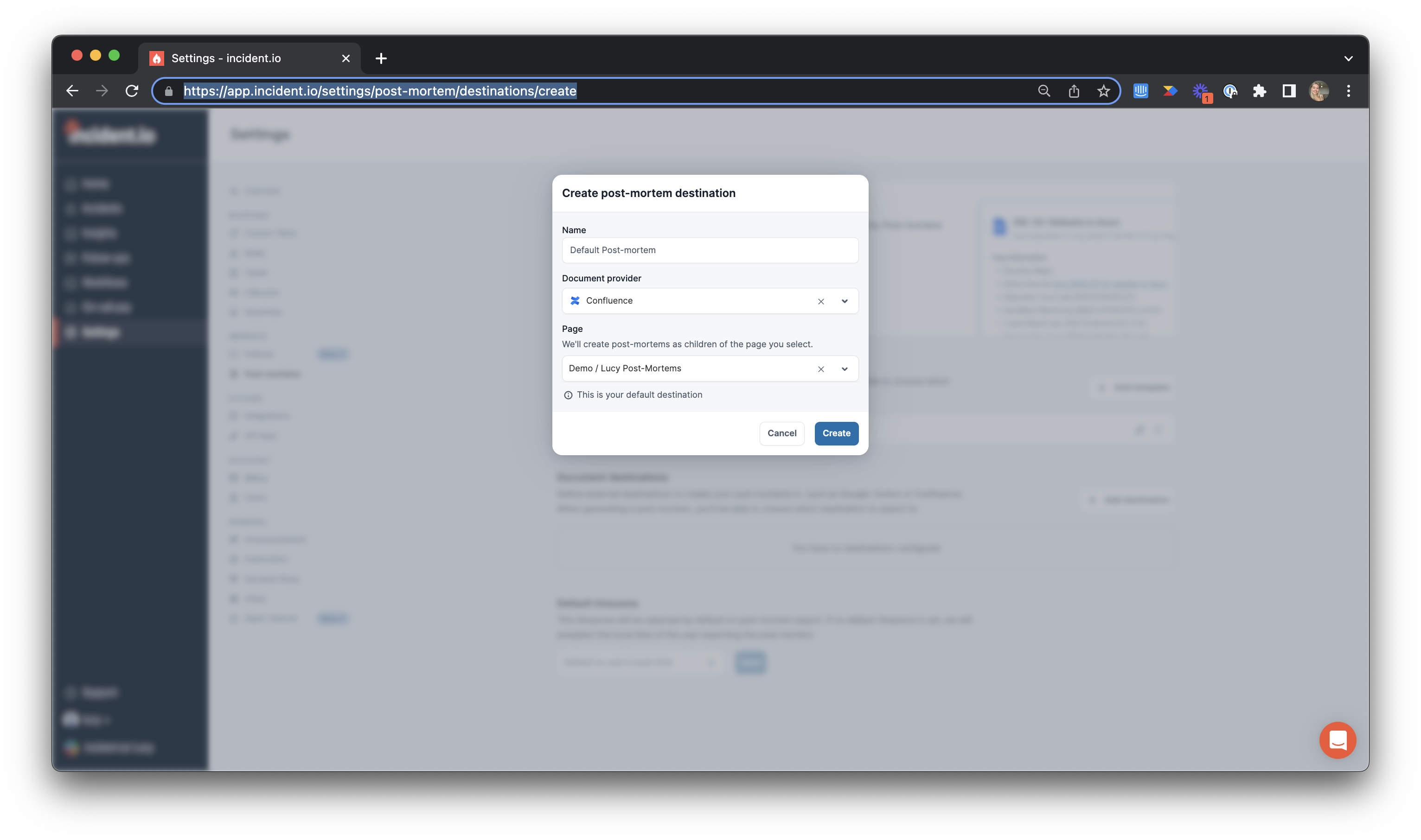 - You can then configure the default destination for your post-mortems - we’ll then create post-mortems as children of the page you select. This will be the default destination for your post-mortems.