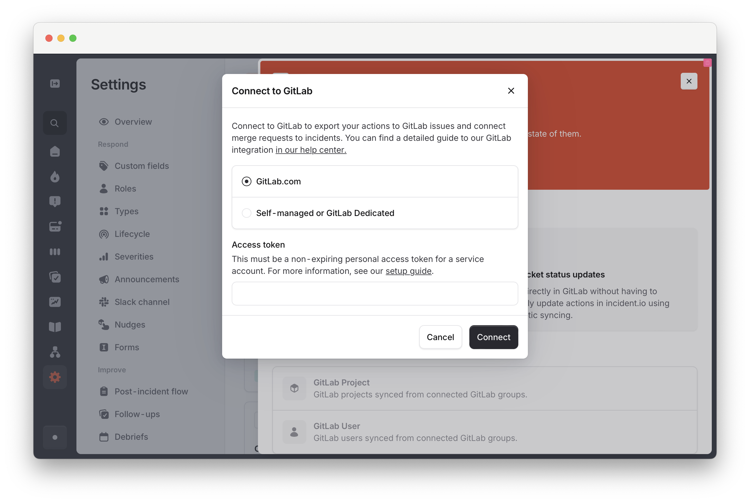 Adding GitLab to incident.io is simple.1. Create a Service Account user in GitLab