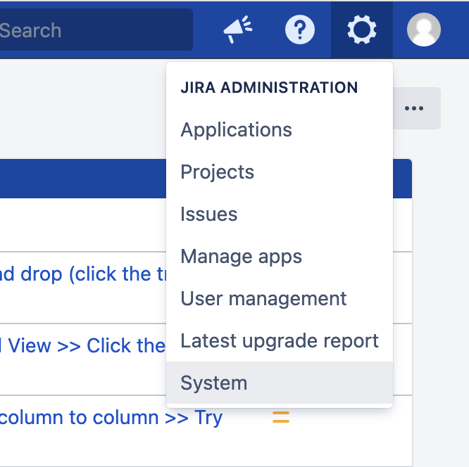 In Jira, use the cog menu in the top-right to enter System settings.