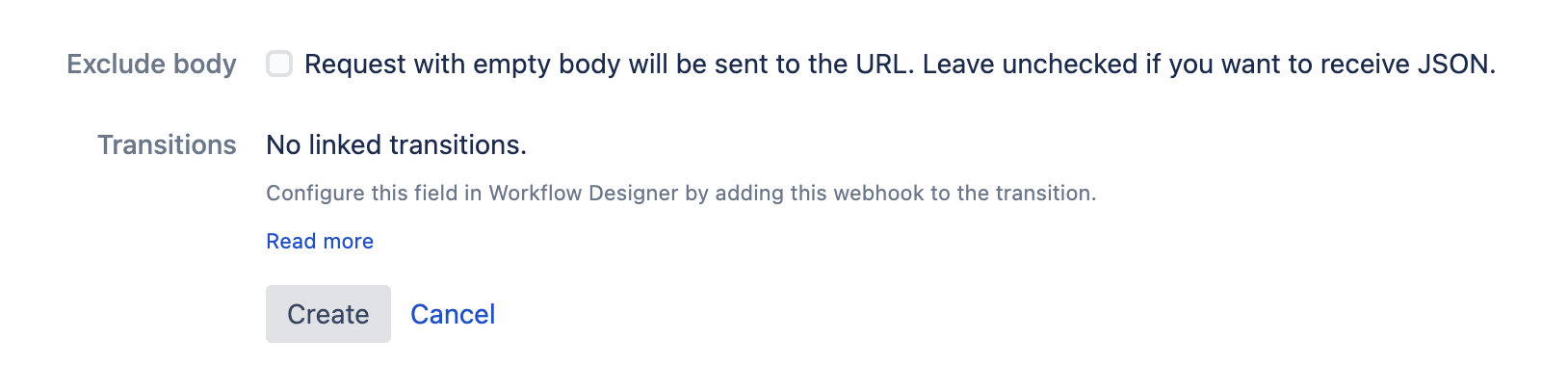 At the bottom of the page, ensure ’ Exclude body ’ is not checked, and click ’ Create ’.