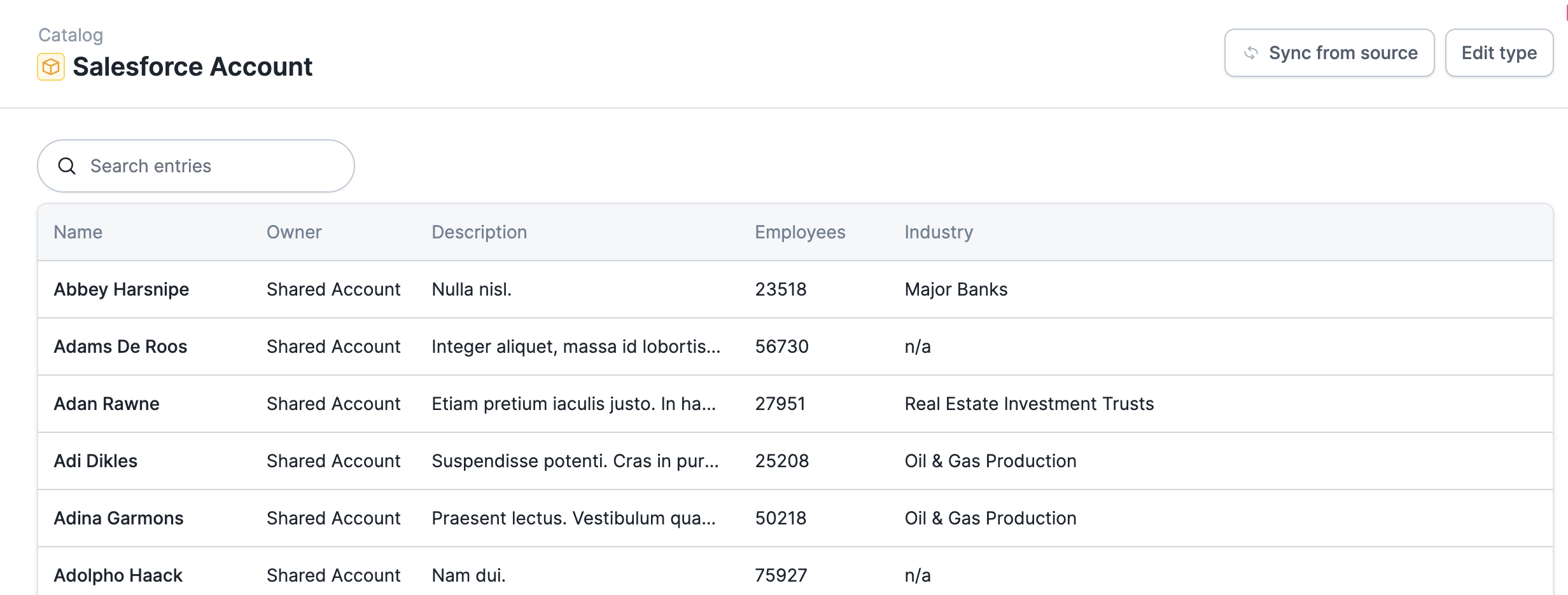 Once you’ve set up the basic Salesforce integration, you can choose to add Salesforce custom fields, as well as more Salesforce objects like “Contact” or “Opportunity”. Head to Catalog , scroll to Salesforce and hit “Import another type”: