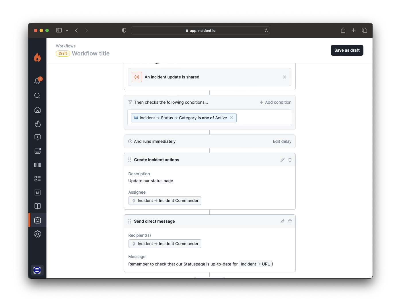 In the meantime, on top of our built-in nudges (see video), you could also set up a Workflow like the one below to remind your team to update Statuspage! 👇🏼