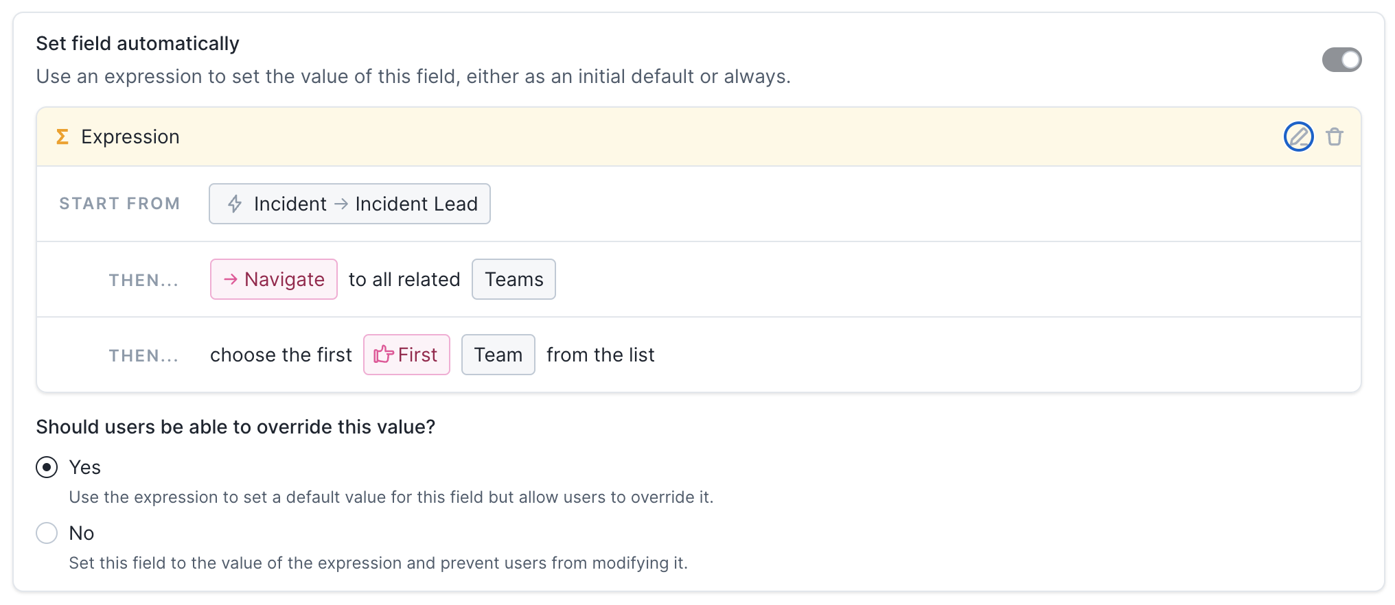 You can now automatically set custom fields based on who is assigned to a role in an incident, for example “set ‘affected team’ based on which team the incident lead is a member of”.