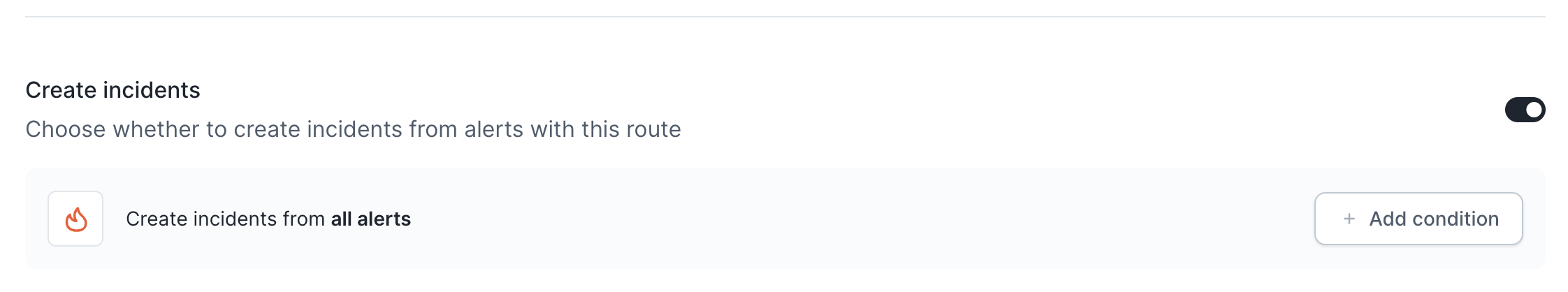 - In the ‘Create incidents’ section you can click ‘Add condition’ to choose the conditions under which you’d like incidents to be automatically declared.