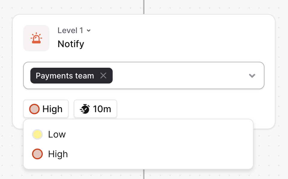 Earlier in this article, we showed how every person can set up their preferences on high and low-urgency alerts. To set them up in the Escalation path, just choose either High or Low in every level to choose how you’d want to notify the users.