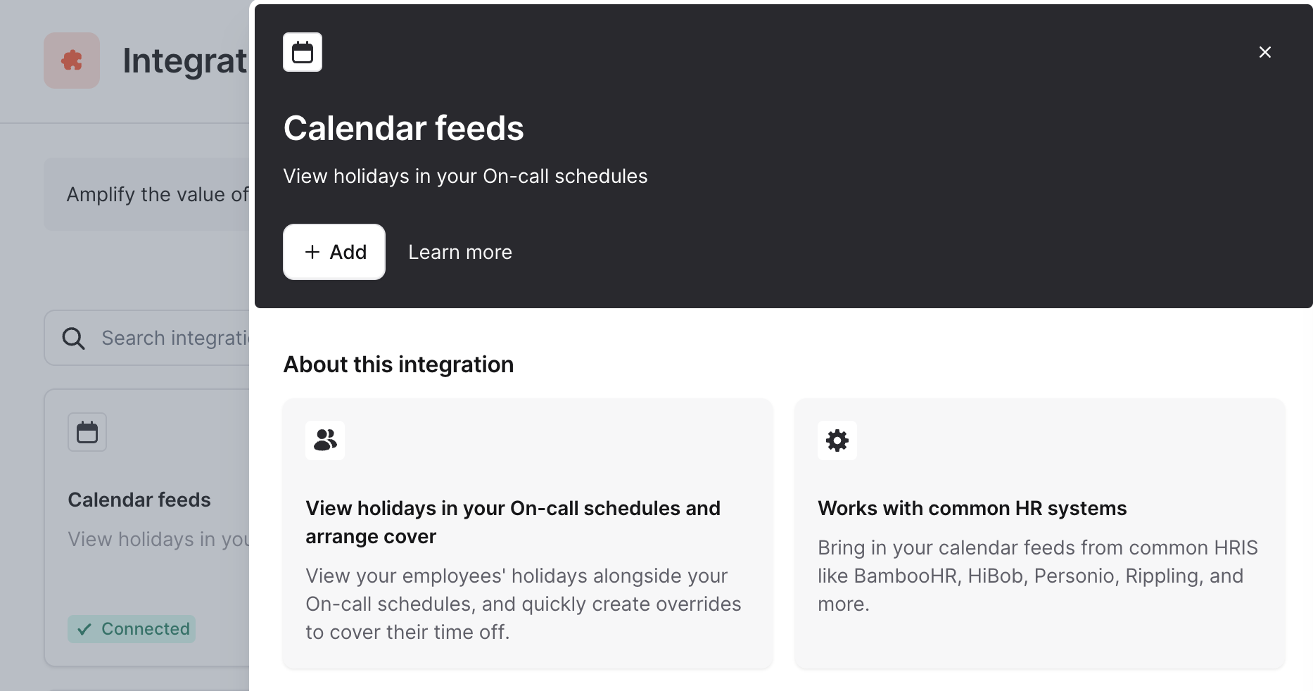To get started with bringing your team’s personal holidays into incident.io, you’ll need to have a URL to the calendar feed that contains your team’s holiday. We provide tips on how some popular HRIS let you set up calendar feed subscriptions below