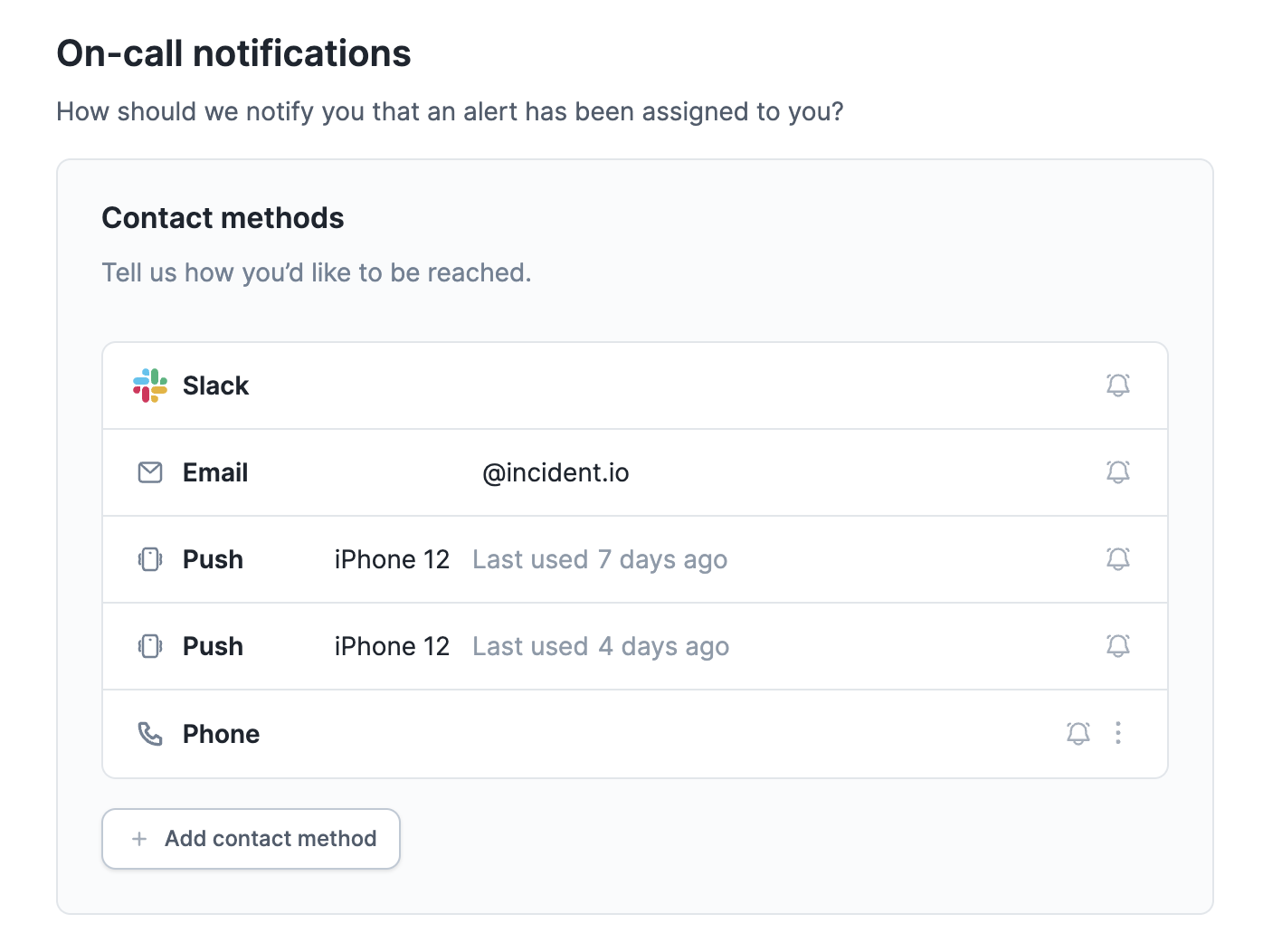 Set up all contact methods you’d like to use within the incident.io dashboard. You can find your preferences by clicking your profile and then choosing preferences.