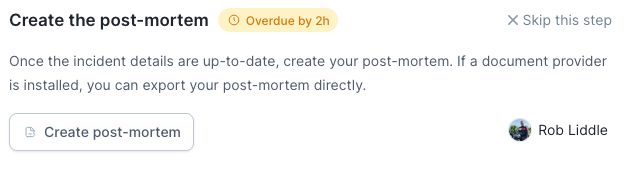 While often not as urgent as solving the incident itself, the post-incident flow ensures you have recorded the right timestamps, fields, and learnings while the incident is still fresh in peoples memories.