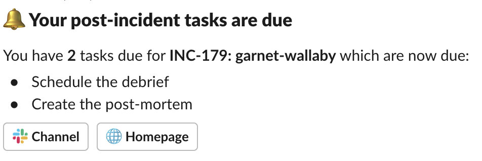 Send reminder will send a similar reminder message to the assignee reminding them to finish this post-incident task.
