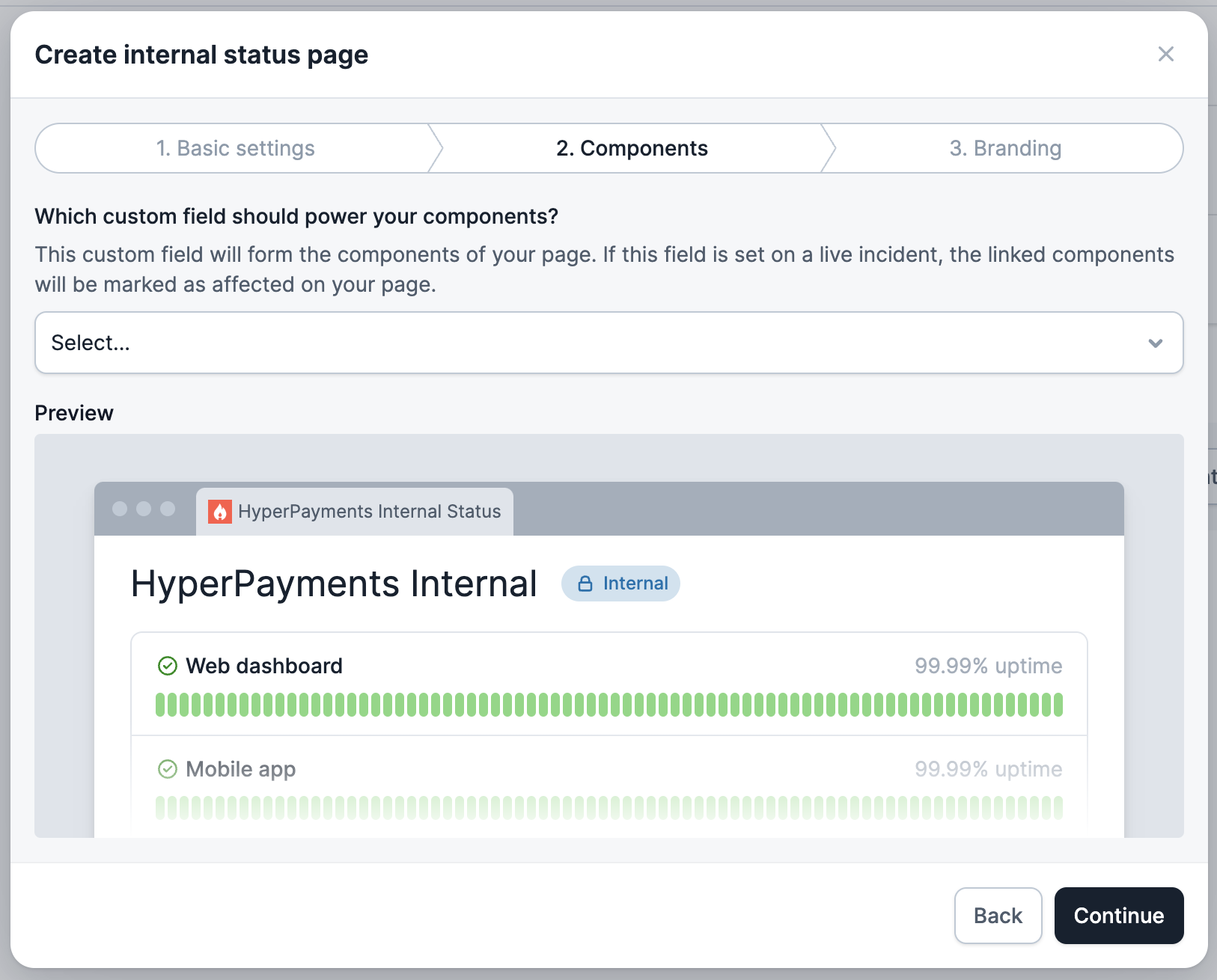 If the custom field used on the internal status page is backed by catalog type as in the example above, you have 2 options for the ordering of components:- Alphabetically