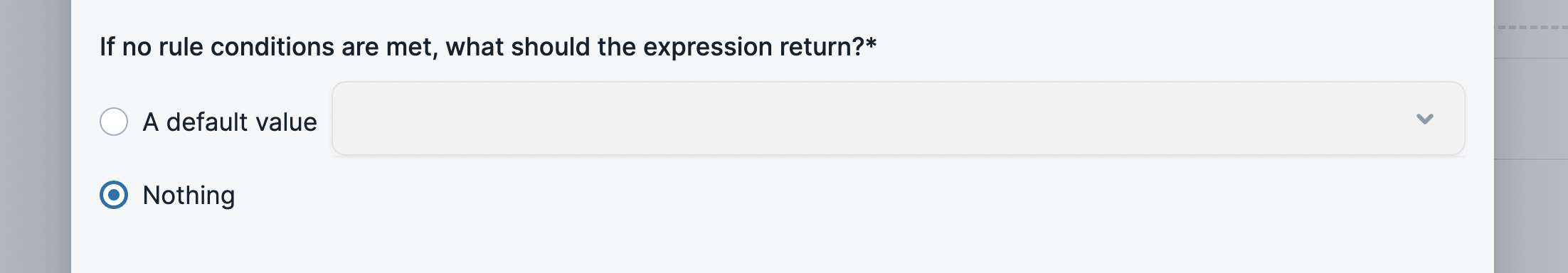- Define what happens when none of your conditions are met. You can either return ‘nothing’, or a default value. If you return nothing and then use the expression in a step that needs a value, we’ll skip running the rest of the workflow from that step.